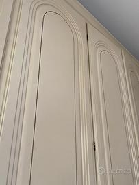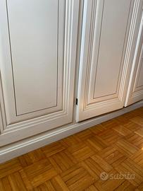 Armadio 6 ante in legno larghezza 300 cm, altezza 260 cm, profondità 60 cm. L armadio presenta un difetto riparabile sulla cerniera della terza anta da sinistra che impedisce la perfetta chiusura. Smontaggio e trasporto a carico acquirente.