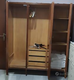 Cedo a prezzo da concordare armadio vintage in legno a 3 ante con specchio, 3 cassetti e ripiani, ben tenuto
