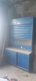 Bellissimo mobile in acciaio con serranda. In ottimo stato, solo da pulire. Dimensioni: - L 135 x H 79 x P 60 parte bassa - L 135 x H 139 x P 35 parte alta