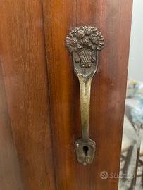 Dotato di cassetti inferiori in legno massello con maniglie in bronzo, questo armadio unisce praticità e stile. I dettagli delle serrature in ferro battuto e le linee eleganti lo rendono un pezzo senza tempo, ideale sia per ambienti classici che per spazi moderni in cerca di un arredo di grande carattere.