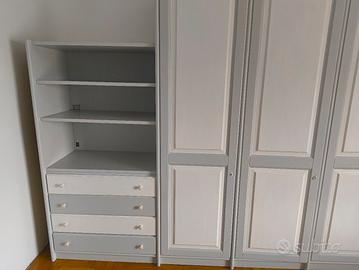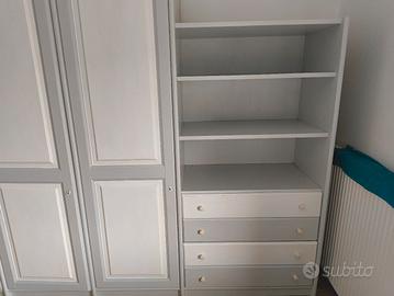 Causa trasloco cedo armadio in Pino dipinto esternamente qualche anno fa, ha bisogno di qualche piccolo ritocco e di essere completato sui due lati esterni ( non era stato fatto a causa di poco spazio ) all'interno ha il colore originale.