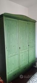 armadio tenuto in ottimo stato in legno di pino color verde salvia, con le seguenti misure: lunghezza 1,61 cm e altezza 2,40 cm.