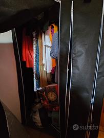 L'armadio è composto da una struttura in plastica dura e molto resistente, con 1 scomparto per appendere camicie e giacche e un altro suddiviso in mensole per riporre maglie etc..
