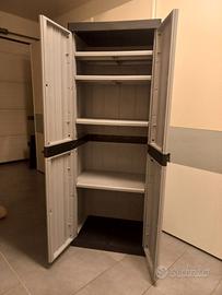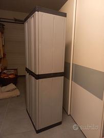 Vendo armadio in plastica grigio e nero completo di ripiani. Misure: 45x65xh.175