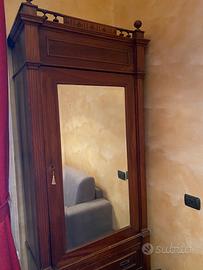 Vendo elegante armadio in stile classico, caratterizzato da anta con specchio centrale e cassetto inferiore. Mobile robusto e di ottima qualità artigianale, ideale per arredamenti classici, camere da letto o case di charme.