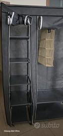 Armadio di stoffa, come nuovo, acquistato a novembre 2024, utilizzato 6 mesi, struttura in ferro intatta, telo amche, come mostrato nella foto, ha ceduto la cucitura di una colonnina, ma è facilmente riparabile...chiusire intatte
