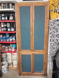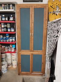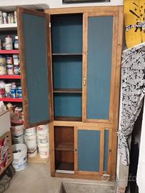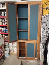 Proveniva dallo stabilimento Fiat di Mirafiori, periodo anni 50 60 , in legno massello, due ante superiori con cerniere e blocco porte , due antine inferiori scorrevoli.