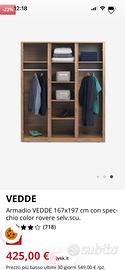 Conprato per arredare la seconda casa… mi trovo a caraglio 6 km da cuneo, l’armadio è montato , smontaggio e trasporto a carico dell’acquirente, lascio contatto telefonico 3485769483