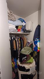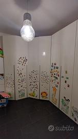 armadio quattro stagioni laccato bianco lucido. moduli scomponibili. cabina armadio angolare. Compresi ripiani e bastoni appendiabiti. molto capiente. gli adesivi attaccati possono essere rimossi facilmente senza danni agli sportelli. h 2.60 m