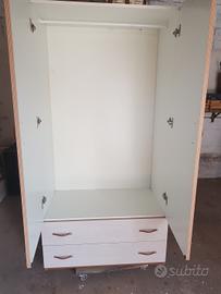 Armadio due porte , due cassetti, colore grigio chiaro.
