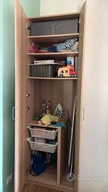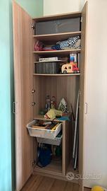 Armadio in legno chiaro IKEA, altezza 232 cm e larghezza 75 cm, ideale come soluzione salvaspazio ma molto capiente. All’interno è organizzato come “porta tutto”: perfetto per vestiti, scatole, accessori o oggetti di uso quotidiano. Dispone inoltre di due comodi cassetti nella parte inferiore, utili per riporre biancheria o piccoli oggetti. Struttura solida, design semplice e moderno che si adatta facilmente a diversi ambienti della casa. Ritiro a carico dell’acquirente.