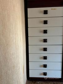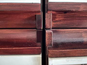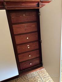 Vendo armadio da parete in legno massello, costruzione artigianale di qualità, in ottime condizioni. CARATTERISTICHE PRINCIPALI: — Struttura in mogano massello, spessore 2 cm — Ante laccate bianco, con inserti a specchio su alcuni moduli — 16 moduli totali, separabili sia in orizzontale che in verticale — 8 ante, ognuna composta da modulo superiore + inferiore indipendenti — 1 modulo con cassettiera interna (nascosta) — 1 modulo con cassettiera esterna a 8 cassetti — 6 moduli con serratura e chiave di chiusura — Ogni modulo è rifinito su tutti i lati: può stare a sé stante MISURE (intero armadio): Larghezza: 280 cm — Altezza: 180 cm — Profondità: ~60 cm VENDITA: Si vende tutto insieme o a moduli singoli (minimo 4). Per chi fosse impossibilitato al trasporto, su richiesta fornisco il contatto di un trasportatore di fiducia (servizio a pagamento, da concordare con lui direttamente). RITIRO: A carico dell'acquirente — zona Milazzo (ME). Niente spedizioni. Prezzo intero: 950 € trattabili Moduli singoli: da 60 € a 180 € a seconda del tipo (vedi descrizione) – Modulo con cassettiera (8 cassetti) € 170 – Modulo con anta e specchio € 90 – Modulo con anta bianca semplice € 70 – Modulo con ante interne € 50 Non rispondo a offerte irrisorie.
