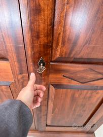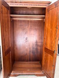 Vendo bellissimo armadio in legno massello, solido e robusto, dallo stile classico ed elegante. Realizzato con finitura calda color noce, presenta ante lavorate con dettagli decorativi e struttura molto resistente. Internamente è spazioso, ideale per camera da letto, casa di campagna o arredamenti rustici/tradizionali. Misure h 198 cm | 101 cm p 58 cm CIRCA Trattabile
