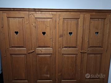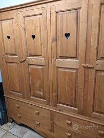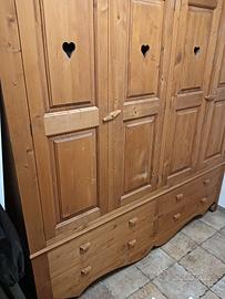 Stupendo Armadio a 4 ante con cassetti, legno di pino massello, molto resistente acquistato da una ditta del nord Italia vendo per cambio arredamento, possibilità di avere a corredo anche un altro armadio stessa fattura di due ante e cassetti.