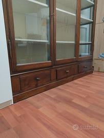 Armadio in ciliegio e vetro degli anni '50 proveniente da opificio di una filatura. Base con tre cassetti. Ante con tre serrature funzionanti e dotate di chiavi originali, anta scorrevole con fermi interno centrale