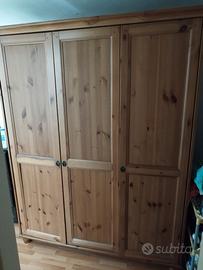 Vendo per cambio arredo armadio Leksvik 3 ante, ha un anta con una leggera spaccatura, Comò a tre cassetti e scrivania con sedia coordinata con qualche segno di usura. Ritiro a carico dell' acquirente, non spedisco.