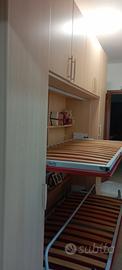Cameretta salvaspazio conarmadio a due letti singoli a scomparsa orizzontale nella parete, armadio a ponte con ante ampie e capienti.