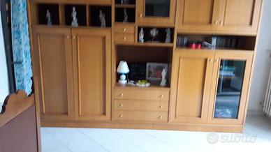 Libreria Armadio a tutta parete in legno massello color noce chiaro lunghezza 320 cm altezza 250 cm larghezza 80 cm. Libreria in casa di Bn, smontaggio e trasporto a carico dell'acquirente. PREZZO trattabile.