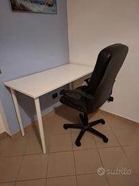 - Scrivania Ikea bianca in plastica (misure: Alt 82 cm x Lung = 120 cm x Larg = 60 cm), prezzo 30 euro (sedia da ufficio in simil-pelle nera inclusa in regalo -- copertura un po' rovinata da tempo e usura)