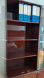 Armadio libreria laccato bordeaux adatto uso ufficio o sala con sportelli superiori in vetro, in ottime condizioni.