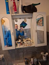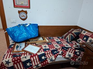 Armadio con vetrinae cassettini e sportelli 250 euro libreria tripla con vetrina 130 euro, libreria singola 30 euro poltrona letto ad a una piazza con toghe 50 euro mobiletto bagno 30 euro possibilità di acquistare anche singolo pezzo