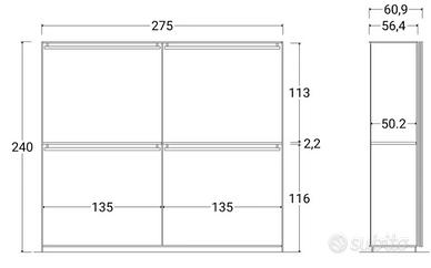 armadio arredissima grigio e inserti legno noce, ante scorrevoli,