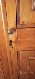ARMADIO SU MISURA IN LEGNO DI OLMO, FATTO A MANO DA FALEGNAMERIA ARTIGIANALE. L'ARMADIO È COMPOSTO DA 3 ANTE, SINISTRA E CENTRALE COME PORTA ABITI, ANTA DI DESTRA A MENSOLE CON 3 MENSOLE. DIMENSIONI 220×180×50. L'ARMADIO È GIÀ SMONTATO E SI TROVA A LIDO DI CAMAIORE. RITIRO A CARICO ACQUIRENTE.