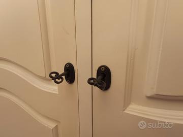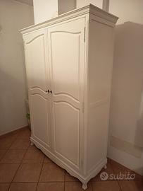 Armadio acquistato da Maison di Monde, modello Josephine. A due porte, lunghezza cm 130. Eleganteappendiabiti in legno, un mobile portatutto ideale per creare un ambiente piacevole, pieno di fascino. L' interno ha da un lato, mensole porta tutto e dall' altro un bastone per appendere abiti. tenuto sempre in ambiente chiuso, non presenta difetti, a parte lo stile Vintage nativo dell' oggetto. si vende solo se ritirato di persona e, in contanti.