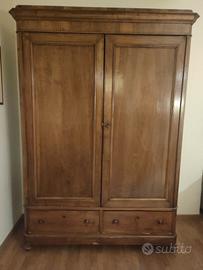 Vendo armadio dell'800 in massello noce perfettamente funzionante con due ante e due cassetti grandi e occorrente per appendiabiti