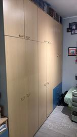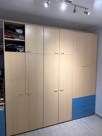 armadio a 6 ante da 90 cm a blocco parte bassa gli sportelli a 2 ante c'è il bastone per appendere gli abiti gli sportelli con la parte alta ci sono 2 ripiani per riporre l'abbigliamento per il cambio di stagione, l'ultime 2 ante la parte sopra sono ripiani e la parte sotto sono 4 cassetti grandi