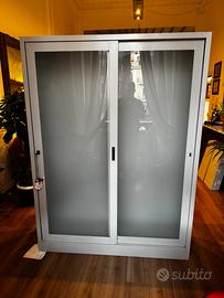 Armadio in metallo con numero otto, ripiani compreso di stop di regolazione e chiusura esterna con vetrine opache, ottime condizioni