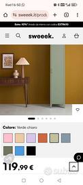 Armadio con ripiani in metallo, colore verde salvia. Nuovo, mai usato, ancora nell'imballo originale.