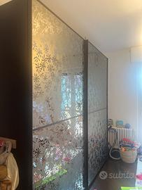 Armadio color wenge’ con 2 ante scorrevoli di specchio satinato a fiori. Pari a nuovo dentro e fuori