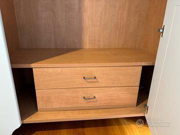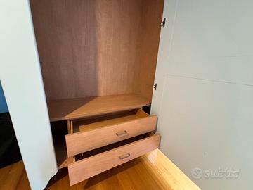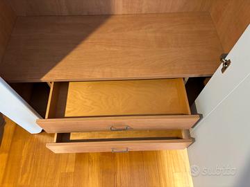 Vendo armadio in buonissime condizioni della Minacciolo, alto cm 220, largo cm 132, profondo cm 65 colore celeste nuvola. L'armadio è a un anta e ha due cassetti. L'armadio è smontato e pronto da portare via. Basta vedere le foto per rendersi conto di quanto sia bello. Non si spedisce!!!