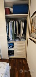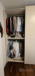 Vendo mobile Misuraemme da camera di 3,60 mt con 3 ante scorrevoli. Le due laterali 130 cm, profondità 64. l'anta centrale lunghezza 93 cm e profondità 67,5 cm altezza 260 cm. Colore beige laccato opaco con profili cromati attrezzato con 4 zone per appendere, 1 cassettiera e 4 ripiani.