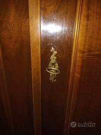 Armadio stile Luigi Filippo con due ante. Dalle linee pulite e con cornice sagomata, doppia cassettiera alla base. LIEVI ammaccature presenti alla base in corrispondenza dei cassetti (v. foto). RITIRO A CURA E A CARICO DELL' ACQUIRENTE. (loc. Querceta)