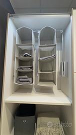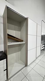 Armadio per trasferimento Armadio 3 ante scorrevoli effetto quercia naturale, bianco opaco cm.274x62x245 compreso anche di sbarra per abbassare gli indumenti senza cassetti (ha solo una piccola scheggiatura che si trova nella parte interna non visibile che non influisce né sulla funzionalità né all’estetica comunque ho foto) l’armadio è completamente smontato e si trova al secondo piano possibilmente a Roma io sono vicino metro Cornelia