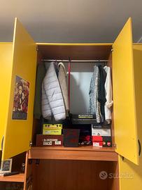 armadio doppio con scompartimento centrale e cassetti centrali, la struttura è costruita per poterci mettere all’interno due reti da letto singole (vendita dell’armadio senza reti e materassi), dietro ai letti ha uno scompartimento per poterci mettere cuscini, coperte ecc. (nessun pezzo è stato sostituito nel tempo, tutto originale)