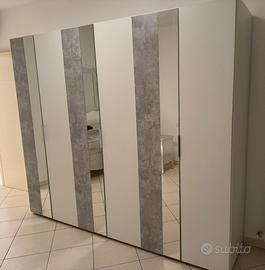 Vendo armadio praticamente nuovo con 6 ante laccate bianco e grigio e specchio. Misure: L 255 - H 214 - P 56 Note: smontaggio e trasporto escluso