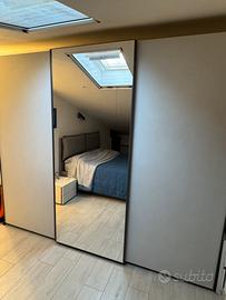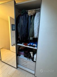 Armadio moderno bianco effetto legno bianco con dettagli in grigio antracite Specchiera centrale Lunghezza: 270 Altezza: 230