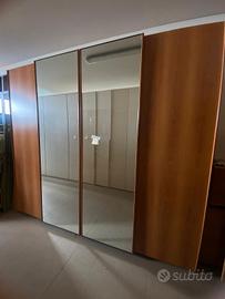 Armadio moderno in legno a 4 ante scorrevoli 2 specchi. L290 H250 P70