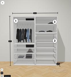 I moduli possono essere acquistati singolarmente oppure combinati (es. modulo 1 + modulo 3 per una soluzione armadio compatta).