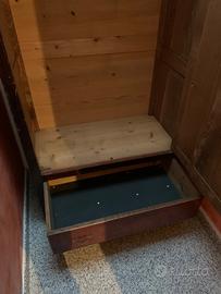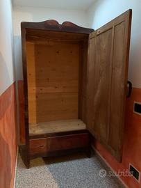 Vendo armadio vecchia fattura a un'anta con cassetto inferiore, realizzato in legno massello. Il mobile presenta una linea sobria e pulita, tipica dell'arte povera del primo '900, con una caratteristica cimasa curva sulla parte superiore.