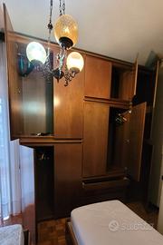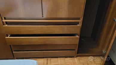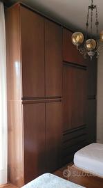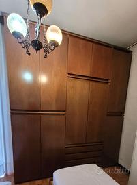 Armadio composto con vari scomparti, misure: Altezza 280 cm Larghezza 250 cm Profondità 59 cm In legno color noce, buono stato. Da smontarli e rimontare poi.