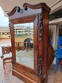 armadio fine 800 Napoletano in palissandro anta a specchio 2 cassetti riccamente lavorato in buonissimo stato misura 135x55 altezza 240...M&P Antichità siamo un negozio specializzato in antiquariato vintage e shabby vendita al dettaglio e all ingrosso scarichi settimanali oltre 500 articoli in negozio, abbiamo una vasta scelta di como comodini tolette armadi letti vetrine vetrinette credenze servanti angoliere librerie tavoli tavolinetti sedie poltrone poltroncine divani lampade lampadari tappeti scrivanie scrittoi secretere ribaltine consolle quadri cornici specchi cassapanche bauli oggettistica varia idee regalo e molto altro ci troviamo a Roma zona Castelverde via Massa San giuliano 26b POSSIBILITÀ DI CONSEGNA E SPEDIZIONE IN TUTTA ITALIA