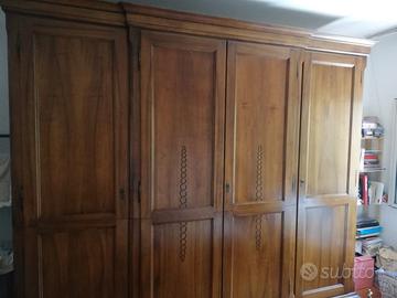 Armadio di noce a 4 ante di larghezza 3 ,10 m e altezza 2,85 metri perfettamente tenuto e in ottime condizioni.