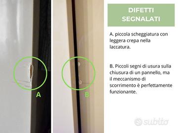 - Minimi segni di usura sulla chiusura di un pannello, ma il meccanismo di scorrimento è perfettamente funzionante.
