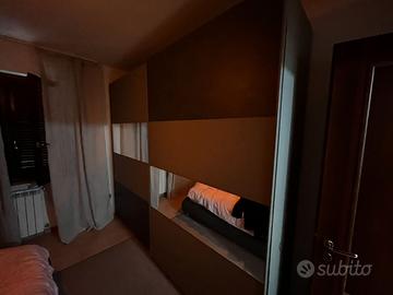 Vendo causa trasloco armadio con 2 ante scorrevoli e quattro scomparti più cassettiera e ripiani, con specchio mondo convenienza 8 mesi di vita. 550 € Smontaggio e trasporto a carico Dell acquirente