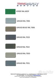 INSERZIONE N°: S.92 Contattateci direttamente con un semplice messaggio whatsapp al daremo risposta a tutte le vostre richieste. Noi di Trans Security Service S.N.C. siamo un'azienda di Verona che dal 1988 si occupa di vendita e noleggio casseforti. Cercate nel web "Trans Security Service S.N.C." troverete molti altri modelli di casseforti e armadi. I nostri prodotti sono prodotti usati e noi li ripristiniamo direttamente mantenendo intatte le caratteristiche di sicurezza,di funzionamento e relative certificazioni, consentendo così al cliente la libertà di personalizzare il prodotto(colore e allestimento). Marca: Parma Antonio&figli Modello cassaforte: Armadio "Vintage" Colore RAL: Grigio (Rosso RAL 3007 + Beige 1013) *Colore a scelta tra i colori Ral inseriti nell'offerta (1013, 1015, 5014, 6020, 6021, 7001, 7015, 7016, 7022, 7030, 7035, 7038, 7040, 7047, 9010, 9005, 9006 senza variazione di prezzo) Dimensioni esterne: H. 800 L. 550 P. 550 + 70 mm Dimensioni interne: H. 680 L. 400 P. 360 mm Peso: 200 Kg N° Ripiani: 4 Nessun foro x ancoraggio di serie,solo su richiesta. Serratura a chiave: Duplice esemplare Combinazione: Su richiesta *Combinazione Elettronica su richiesta, comporta variazione di prezzo. E' possibile ritirare direttamente la cassaforte in azienda o richiedere preventivo per trasporto e istallazione.. Non è garantita la disponibilità immediata, ma potrebbero essere richiesti 4/5 gg lavorativi. Per Info: mail o telefono (sms\WhatsApp) Facendo riferimento al numero dell'inserzione , in questo caso "INSERZIONE N°: S.92".