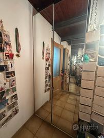 Ottime condizioni, con 2 cassetti, 2 mensole e una barra porta vestiti. Ante a specchio. Trasporto e smontaggio a carico acquirente.